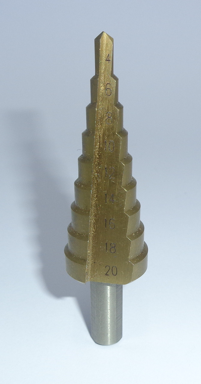 Ступеневі свердла для металу встановлюються для свердління на дриль або свердлильний верстат — Застосовуються для послідовного розсвердлювання й виправлення отворів у листовій сталі, кольорових металах і пластику — Завдяки виточеним за допомогою CBN спіралеподібним пазам різальні грані ступеневого свердла вирізняються гостротою й браком задирок. Стружка видаляється без труднощів, зносостійкість свердла та різальна здатність неабияк збільшується. - свело має величезний спектр застосування: для легованих і нелегованих матеріалів, чавуну, металокерамічних сплавів, бронзових, латуних, дрібникових матеріалів. Ідеальний під час оброблення листового металу зі спеціальної сталі та кольорових металів до 6 мм завтовшки, термореактивної пластмаси.